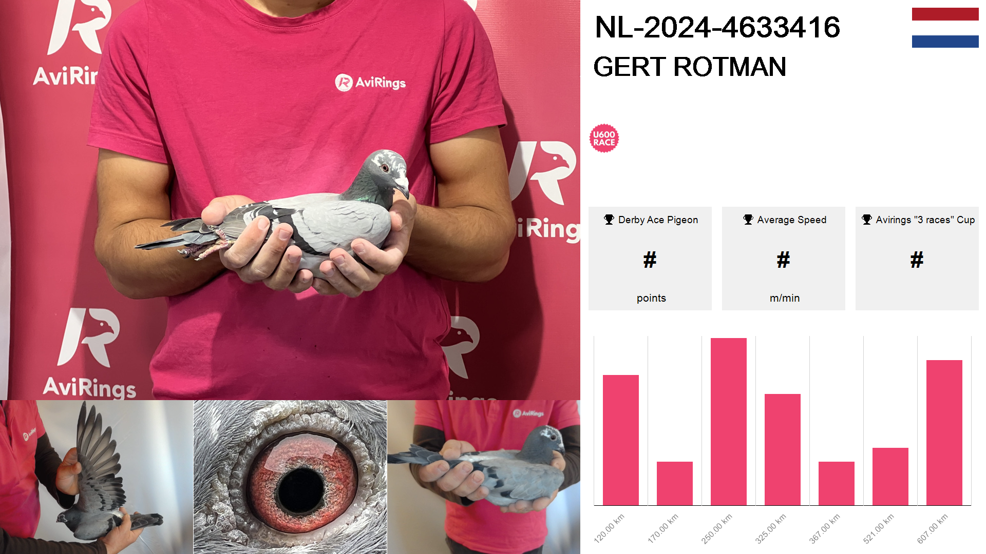 | Race | Position | Number of pigeons | Percent | Speed | Distance |