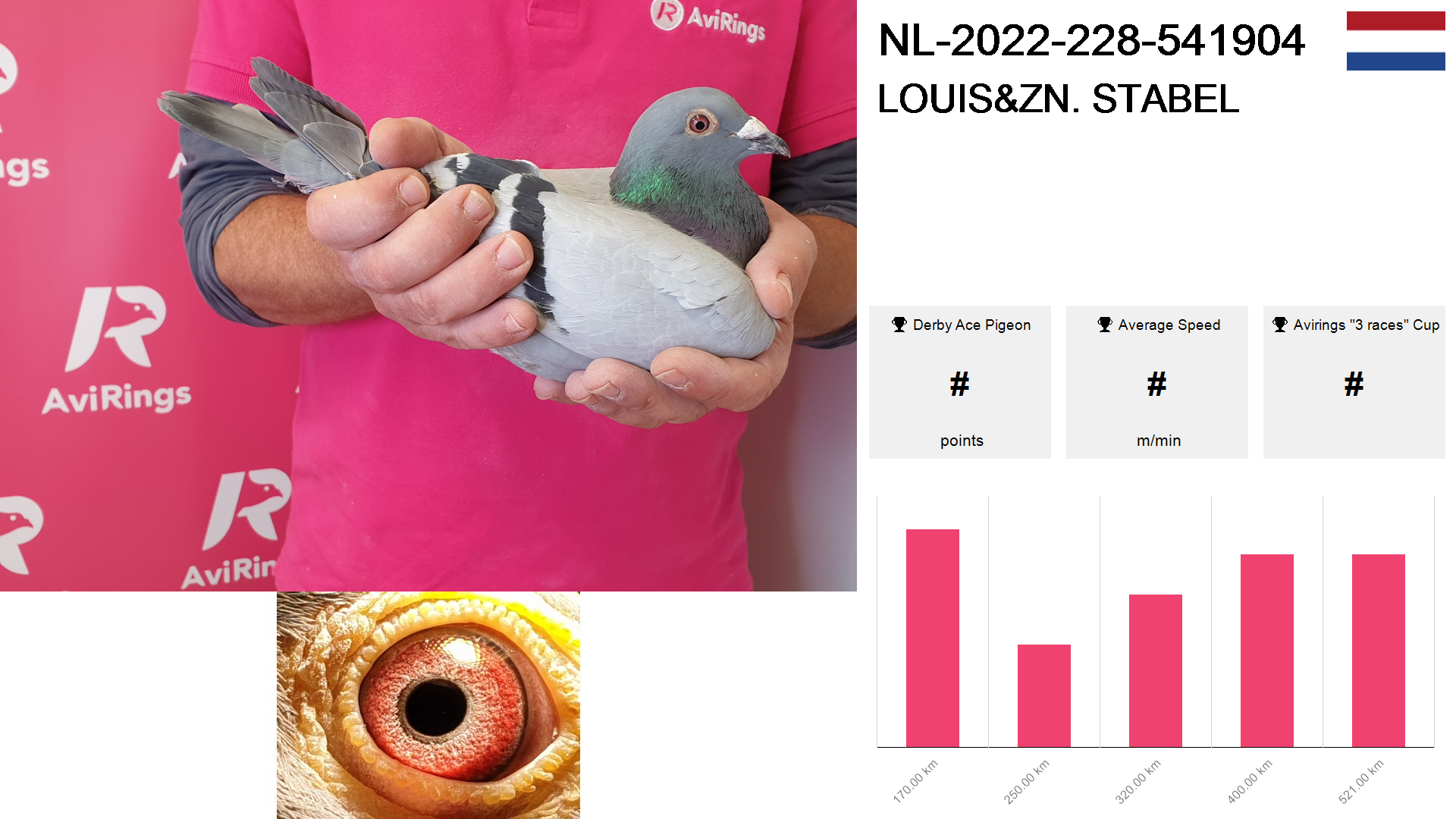 | Race | Position | Number of pigeons | Percent | Speed | Distance |