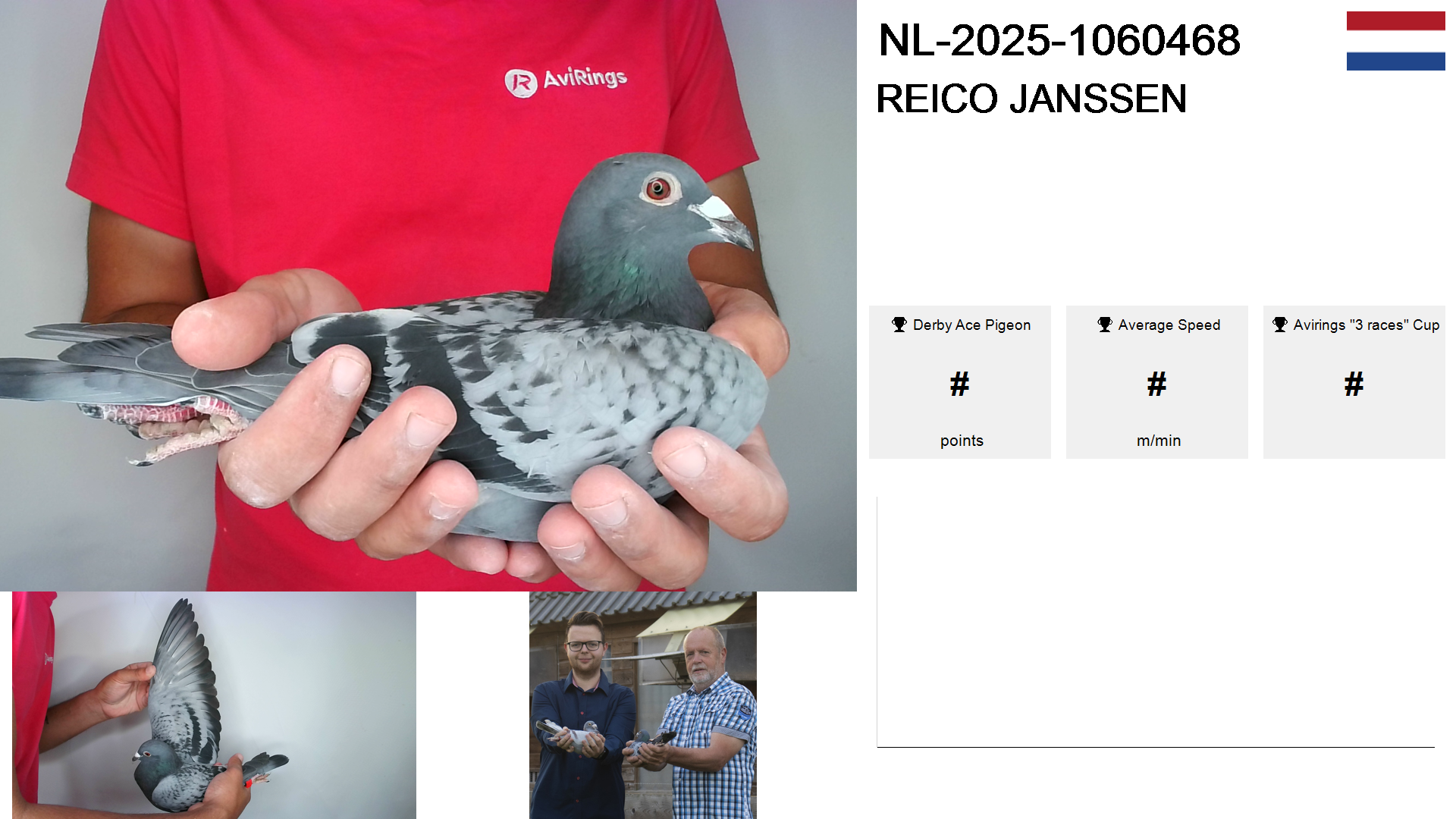 | Race | Position | Number of pigeons | Percent | Speed | Distance |