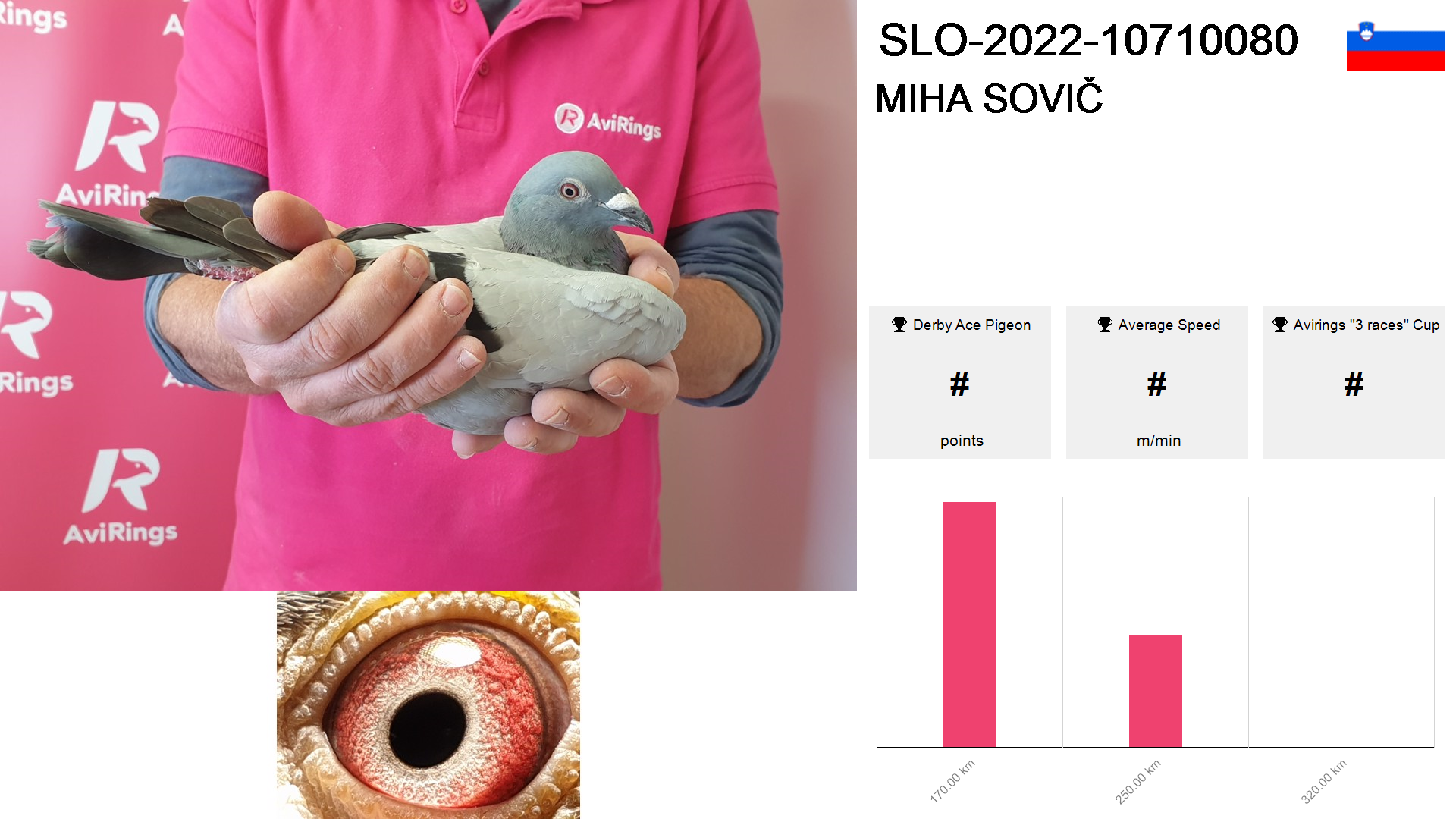 | Race | Position | Number of pigeons | Percent | Speed | Distance |
