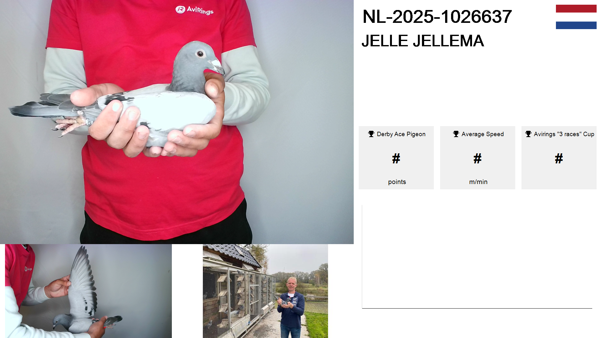 | Race | Position | Number of pigeons | Percent | Speed | Distance |