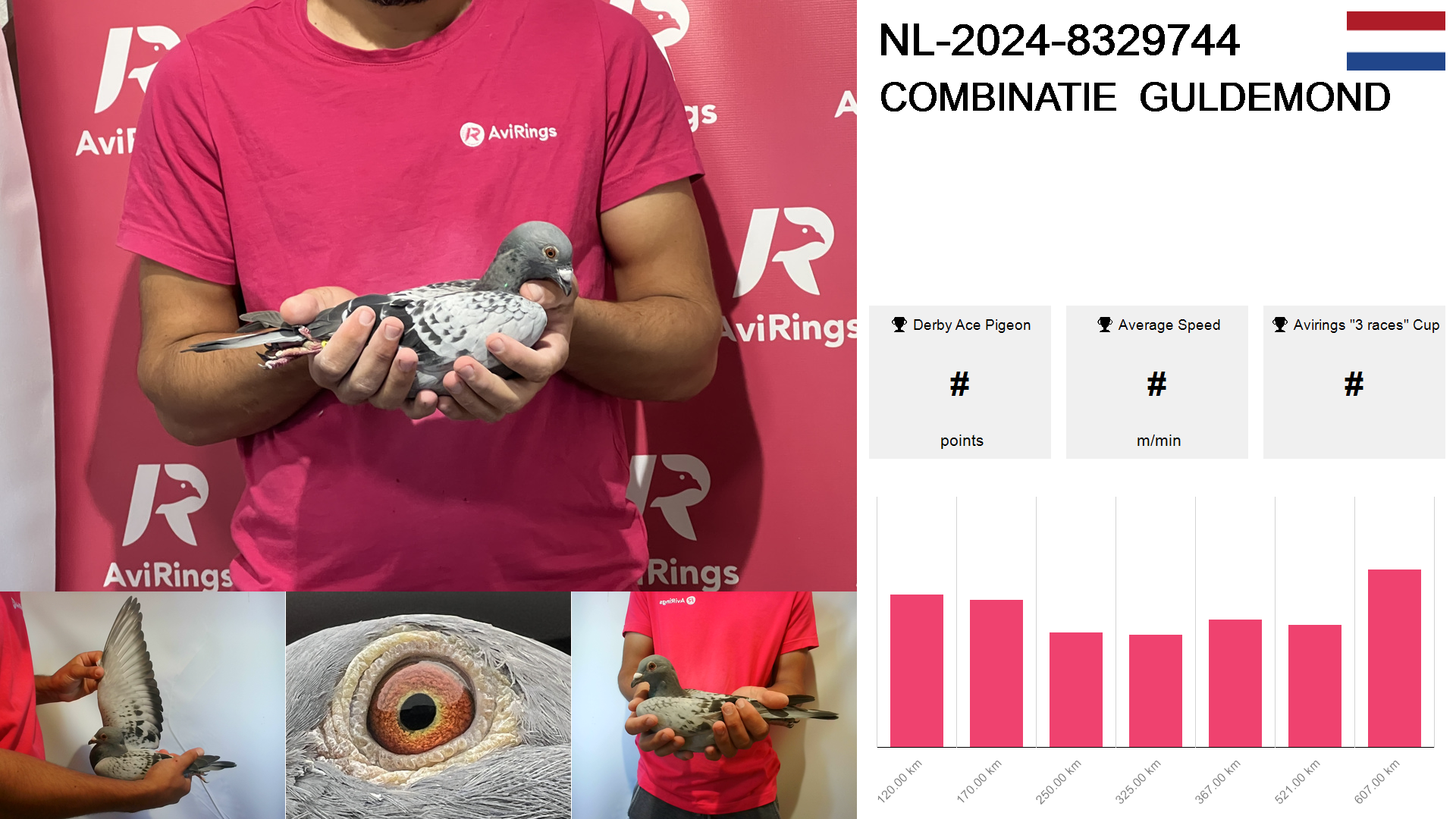 | Race | Position | Number of pigeons | Percent | Speed | Distance |