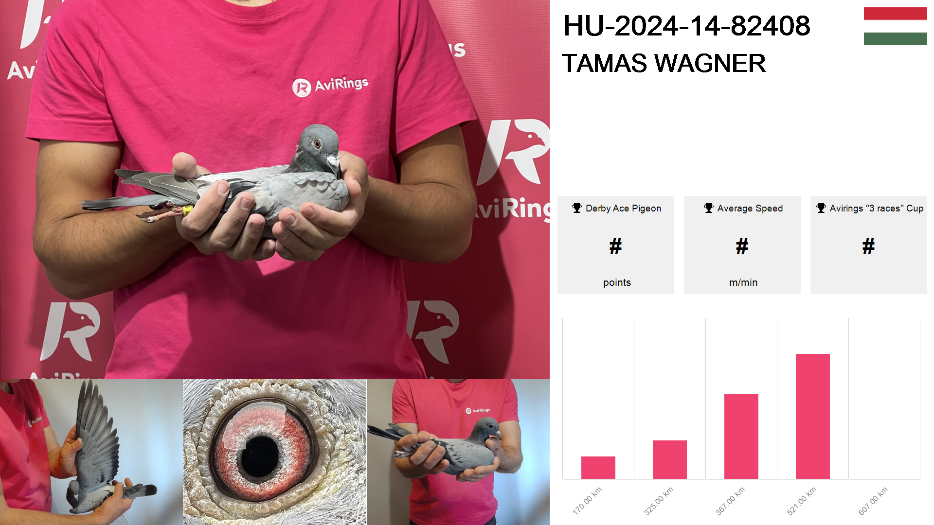 | Race | Position | Number of pigeons | Percent | Speed | Distance |