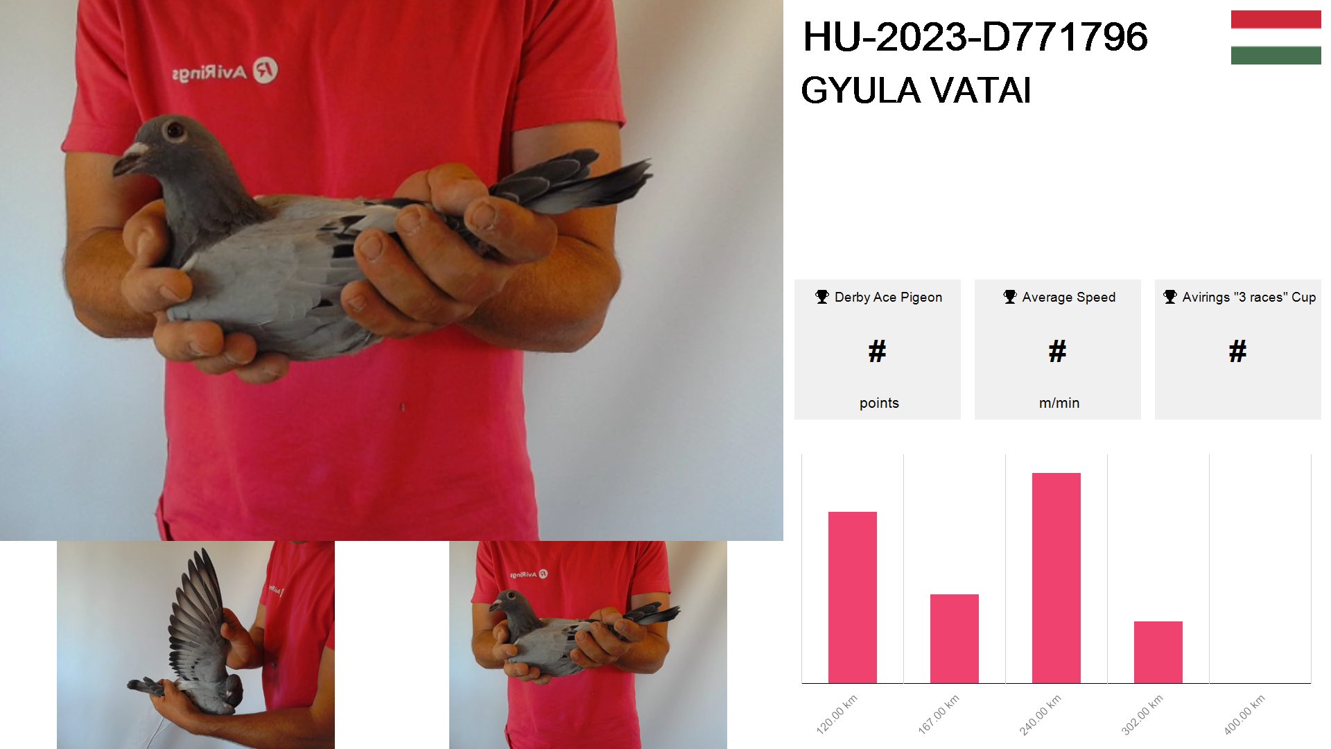 | Race | Position | Number of pigeons | Percent | Speed | Distance |