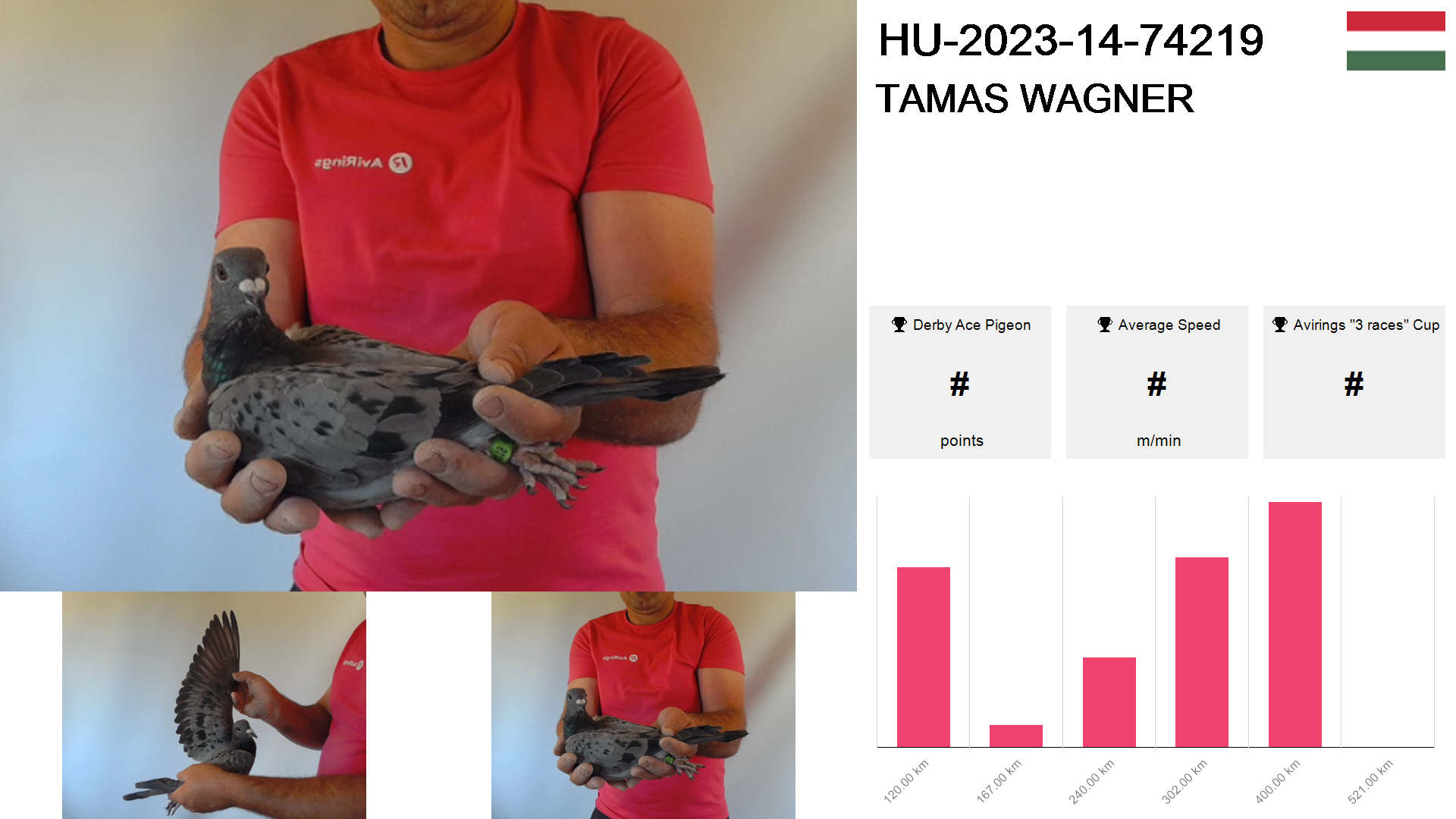 | Race | Position | Number of pigeons | Percent | Speed | Distance |