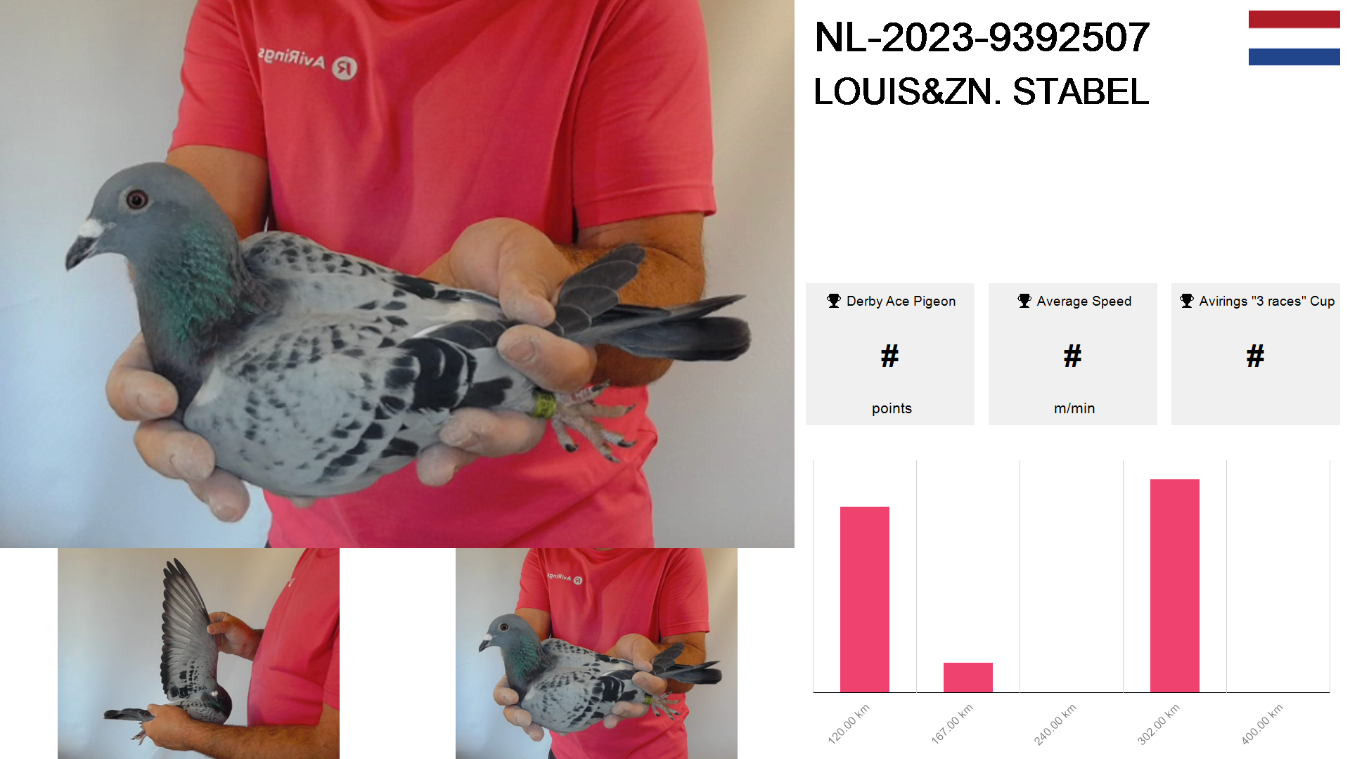 | Race | Position | Number of pigeons | Percent | Speed | Distance |