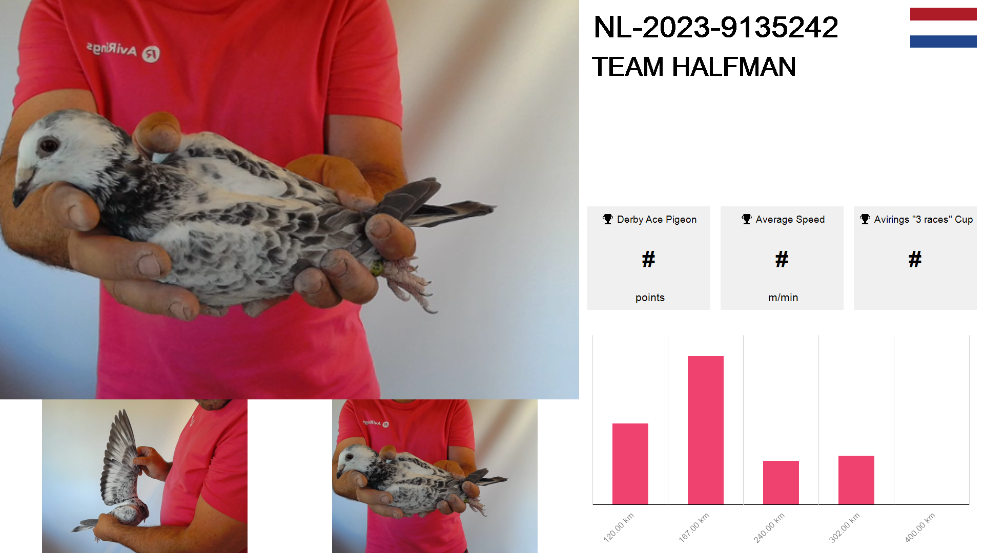 | Race | Position | Number of pigeons | Percent | Speed | Distance |