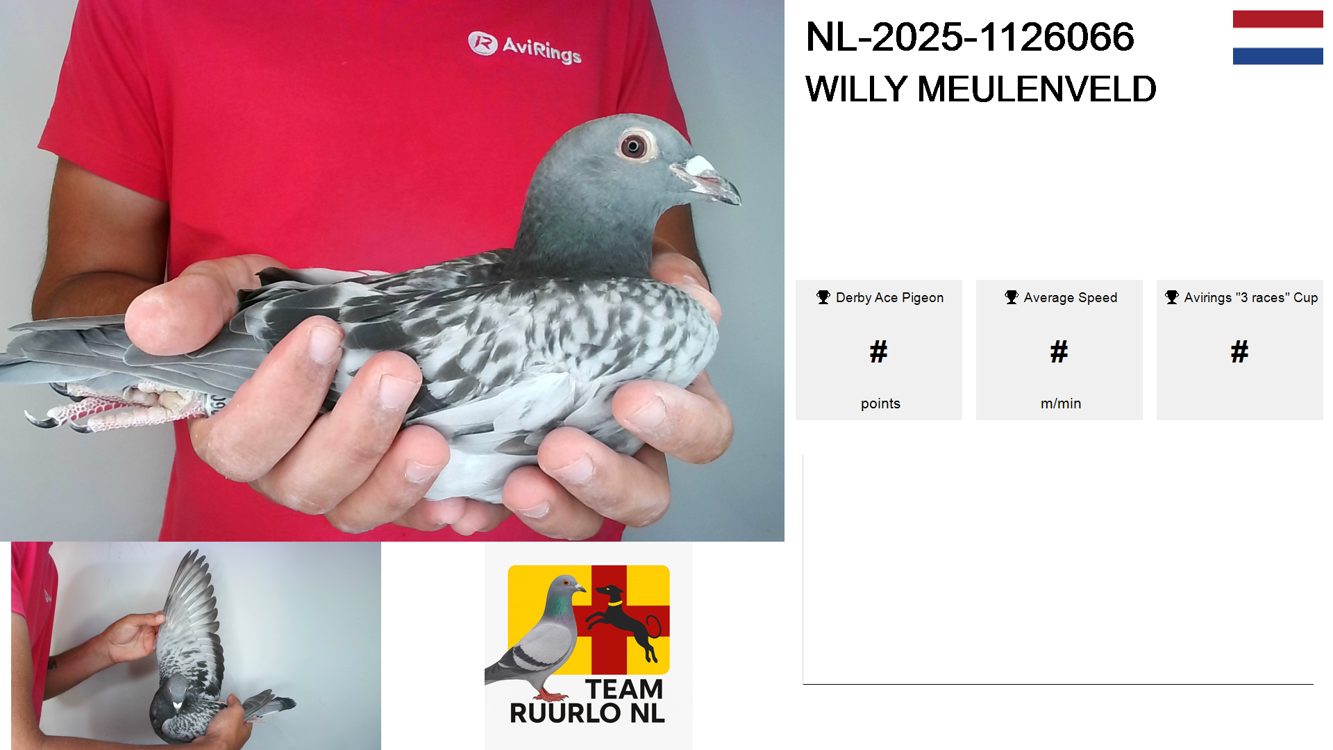 | Race | Position | Number of pigeons | Percent | Speed | Distance |