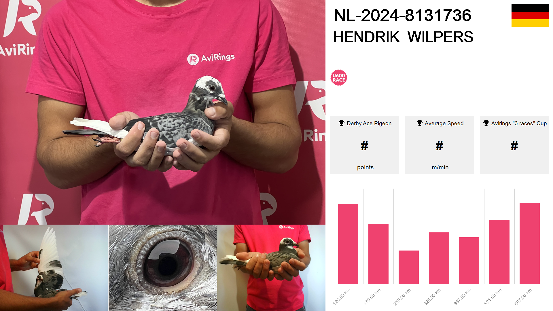 | Race | Position | Number of pigeons | Percent | Speed | Distance |