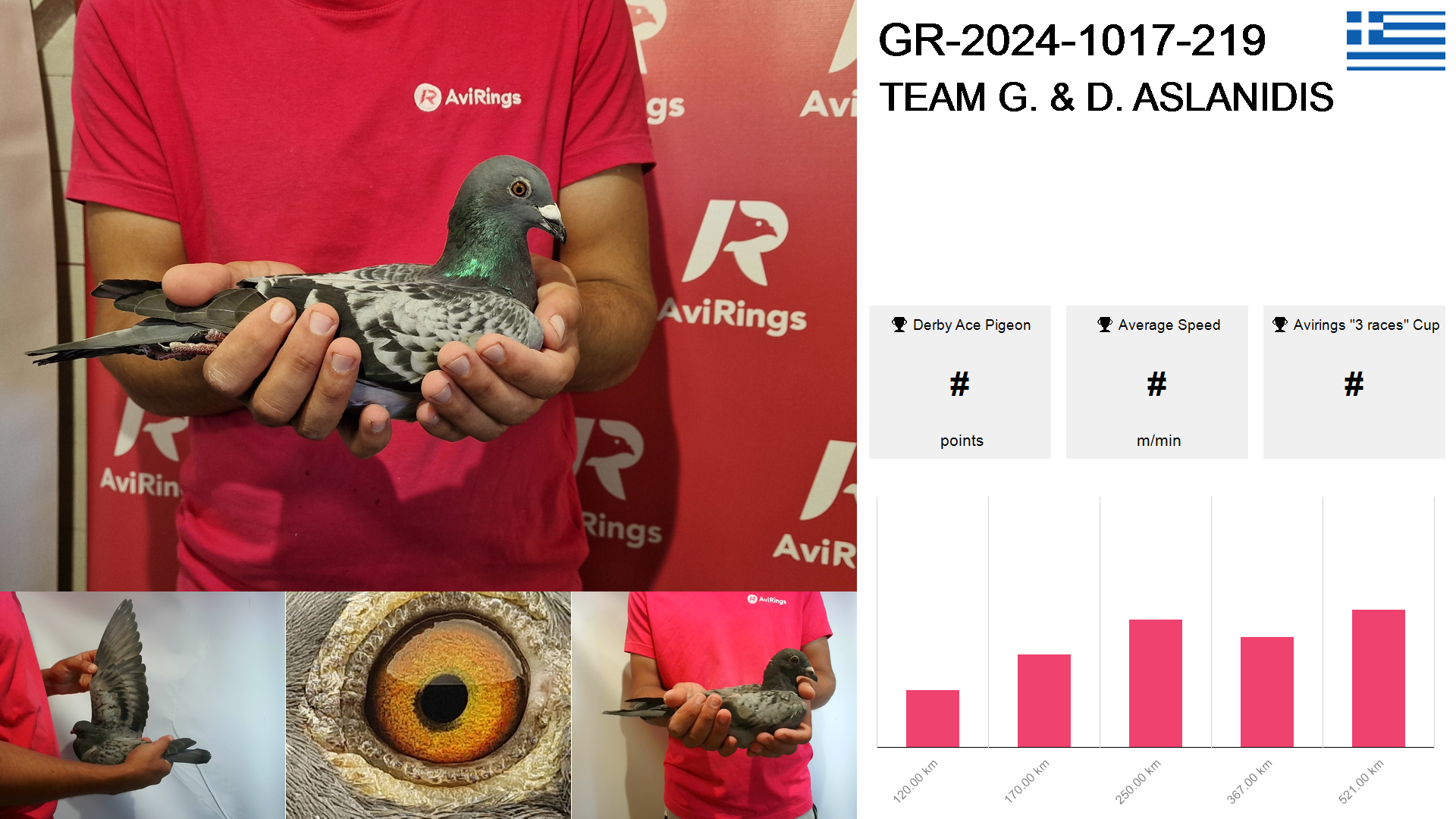 | Race | Position | Number of pigeons | Percent | Speed | Distance |