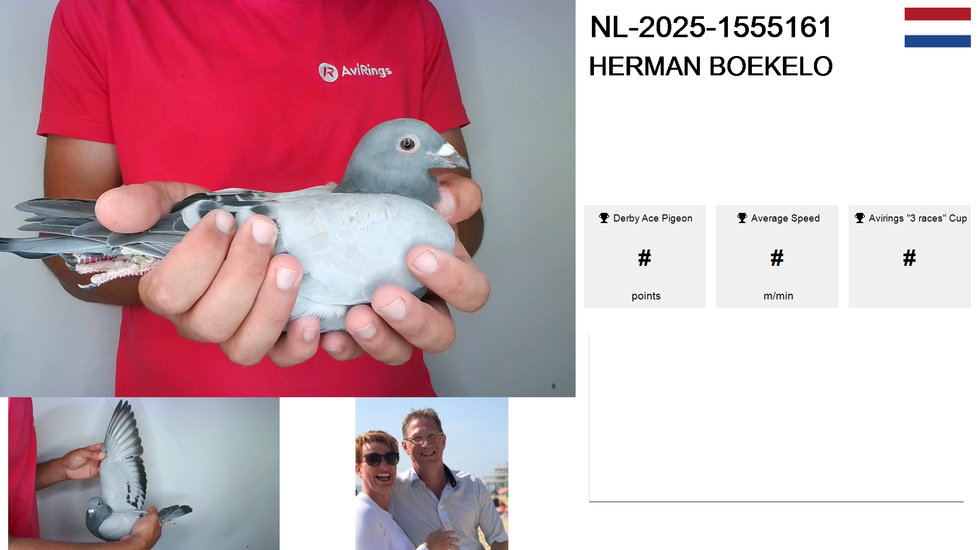 | Race | Position | Number of pigeons | Percent | Speed | Distance |