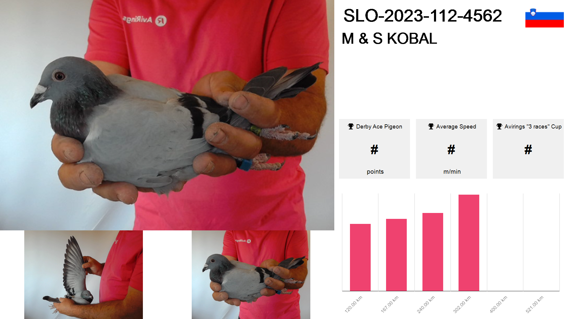 | Race | Position | Number of pigeons | Percent | Speed | Distance |