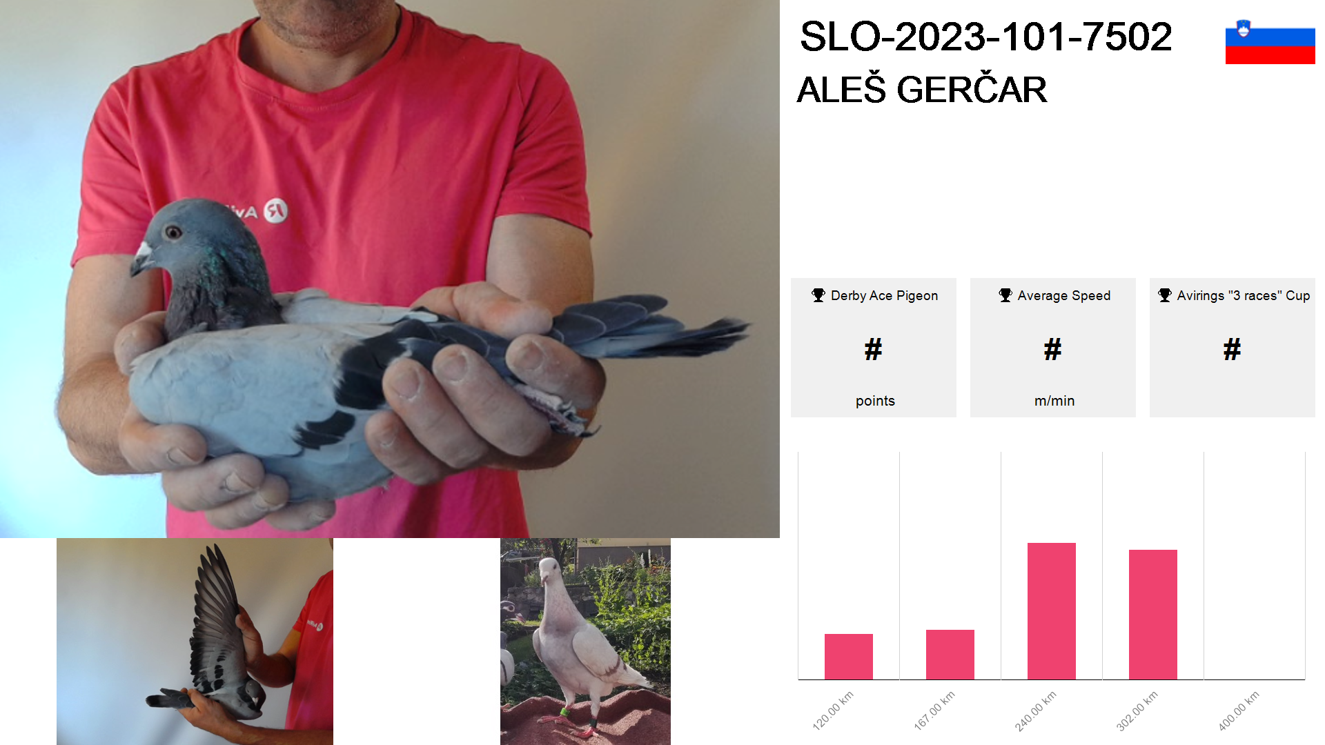 | Race | Position | Number of pigeons | Percent | Speed | Distance |