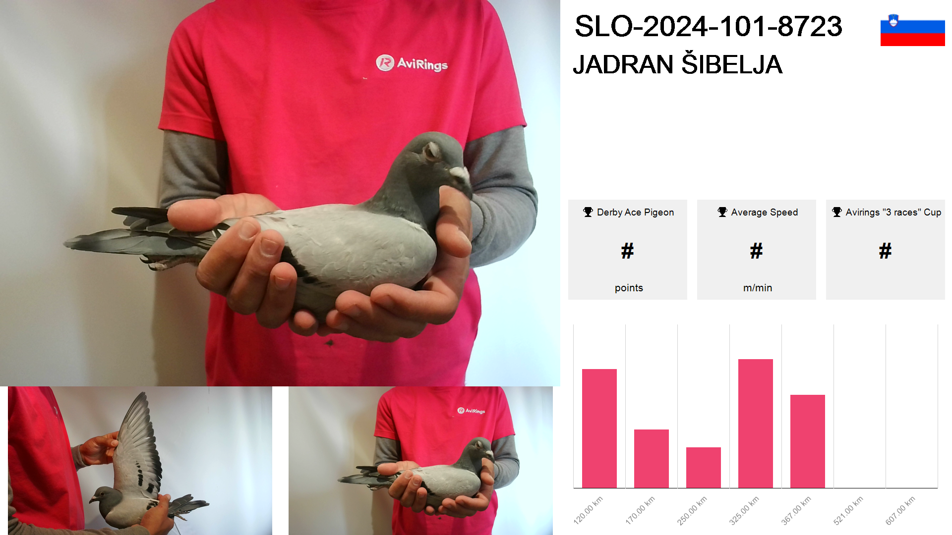 | Race | Position | Number of pigeons | Percent | Speed | Distance |