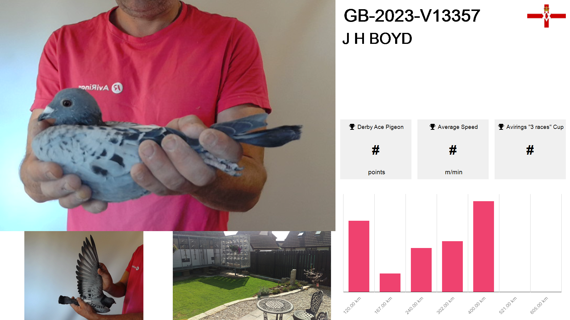 | Race | Position | Number of pigeons | Percent | Speed | Distance |