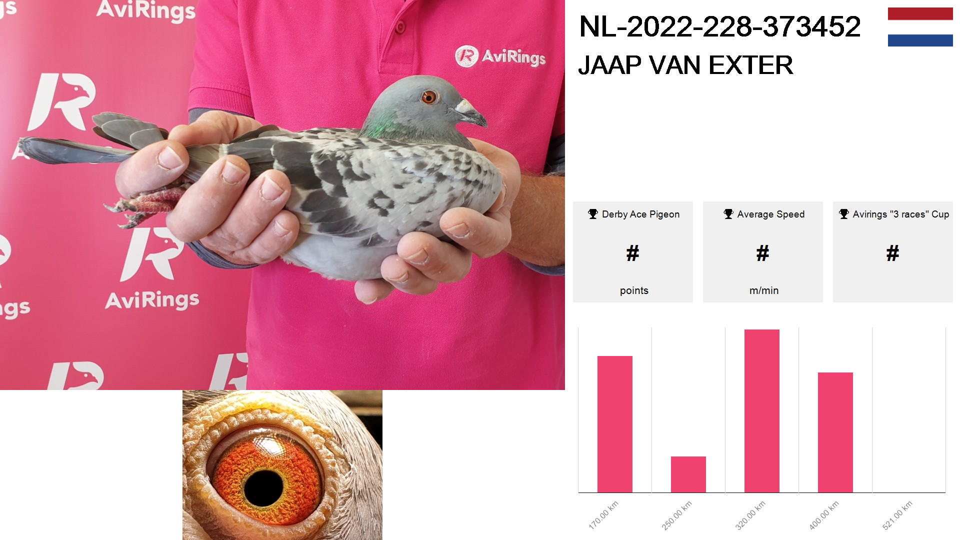 | Race | Position | Number of pigeons | Percent | Speed | Distance |