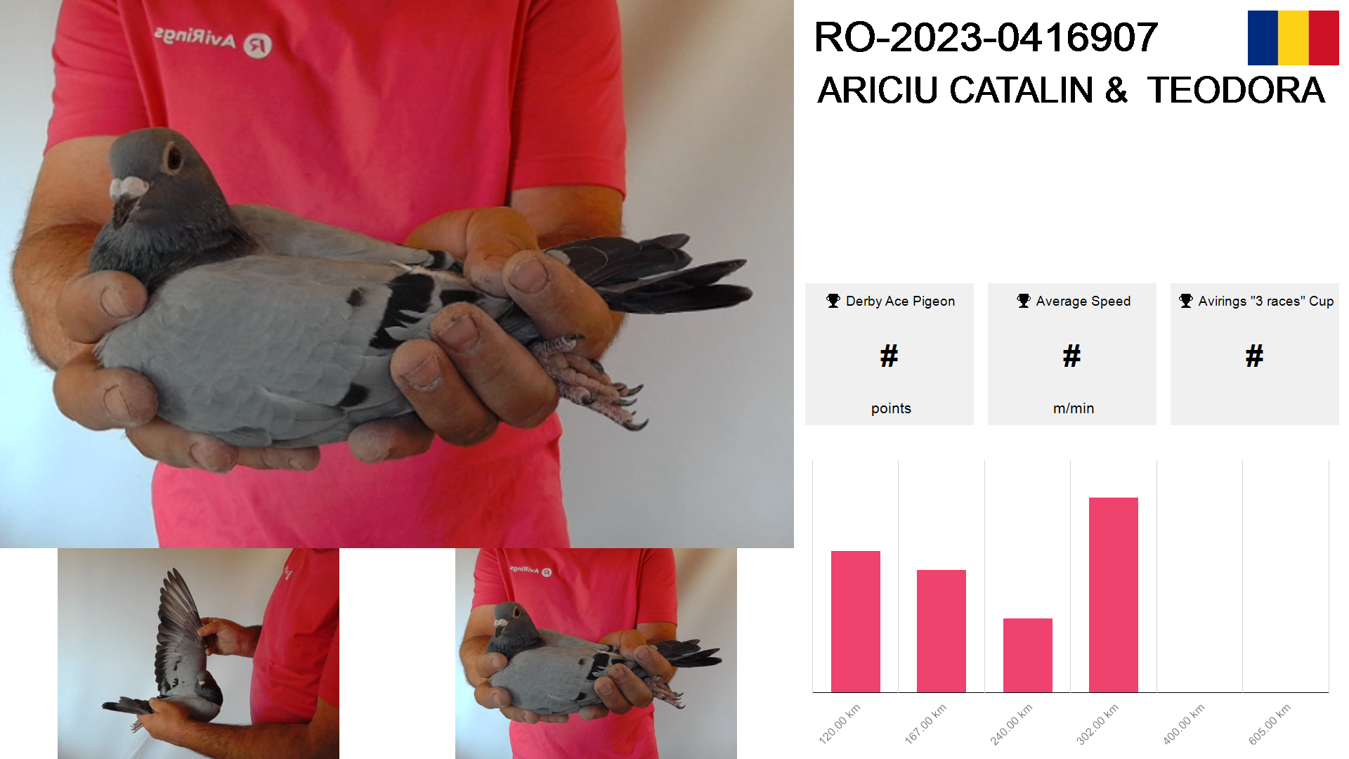 | Race | Position | Number of pigeons | Percent | Speed | Distance |