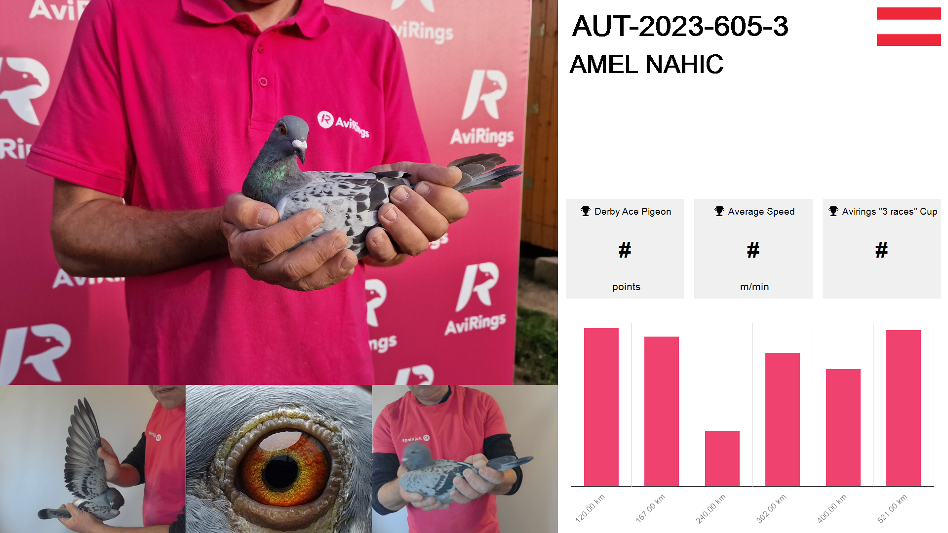 | Race | Position | Number of pigeons | Percent | Speed | Distance |
