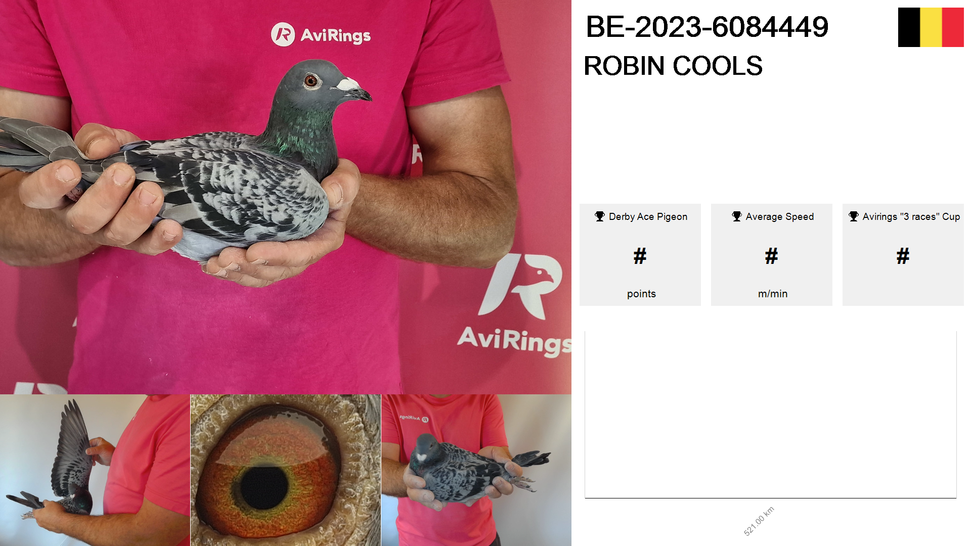 | Race | Position | Number of pigeons | Percent | Speed | Distance |