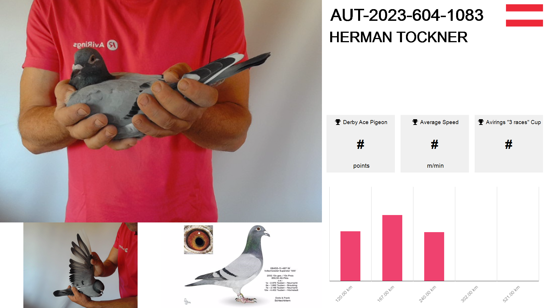 | Race | Position | Number of pigeons | Percent | Speed | Distance |