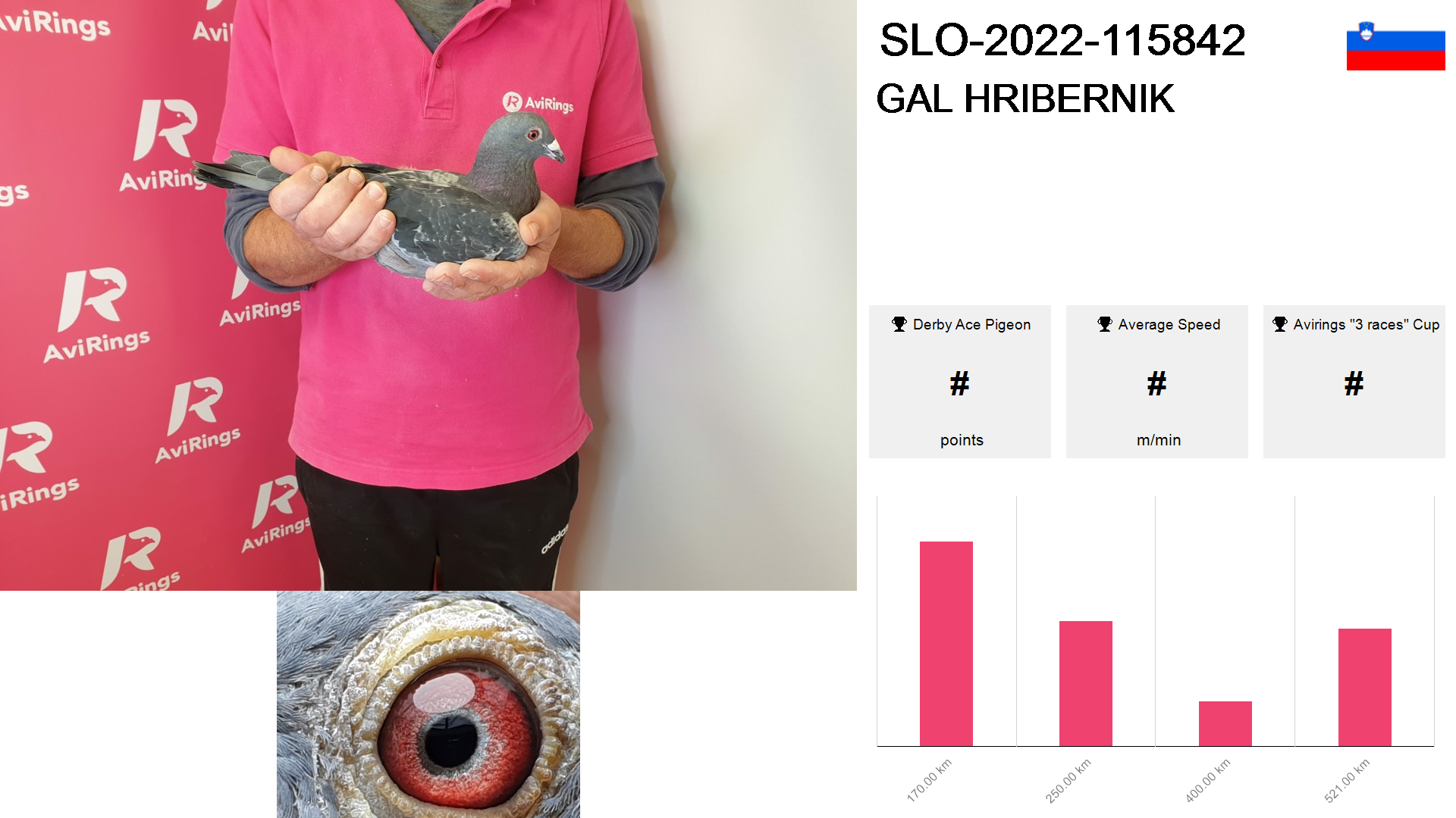 | Race | Position | Number of pigeons | Percent | Speed | Distance |