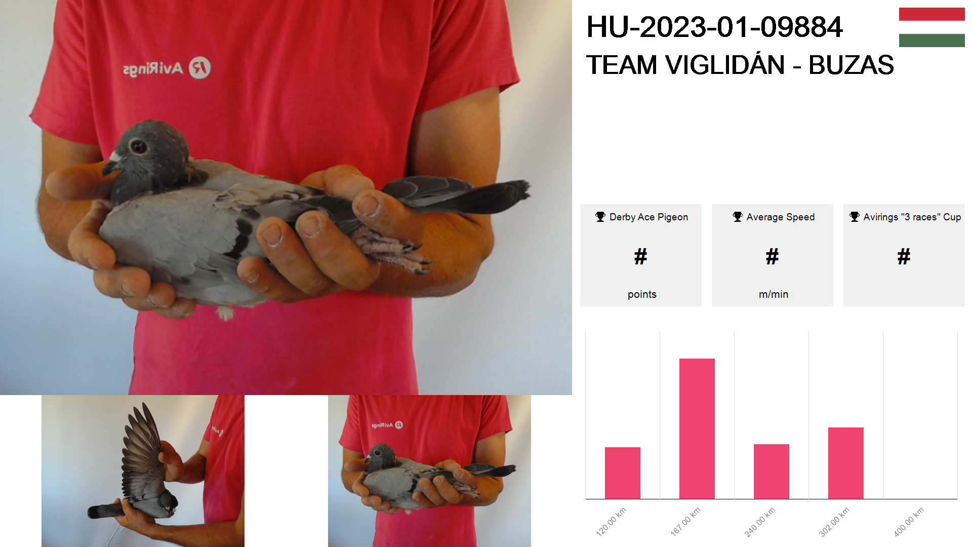 | Race | Position | Number of pigeons | Percent | Speed | Distance |