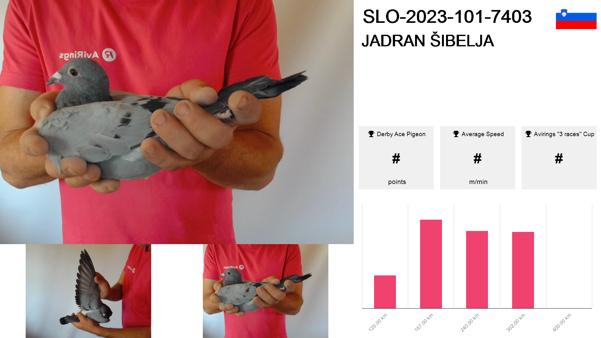 | Race | Position | Number of pigeons | Percent | Speed | Distance |