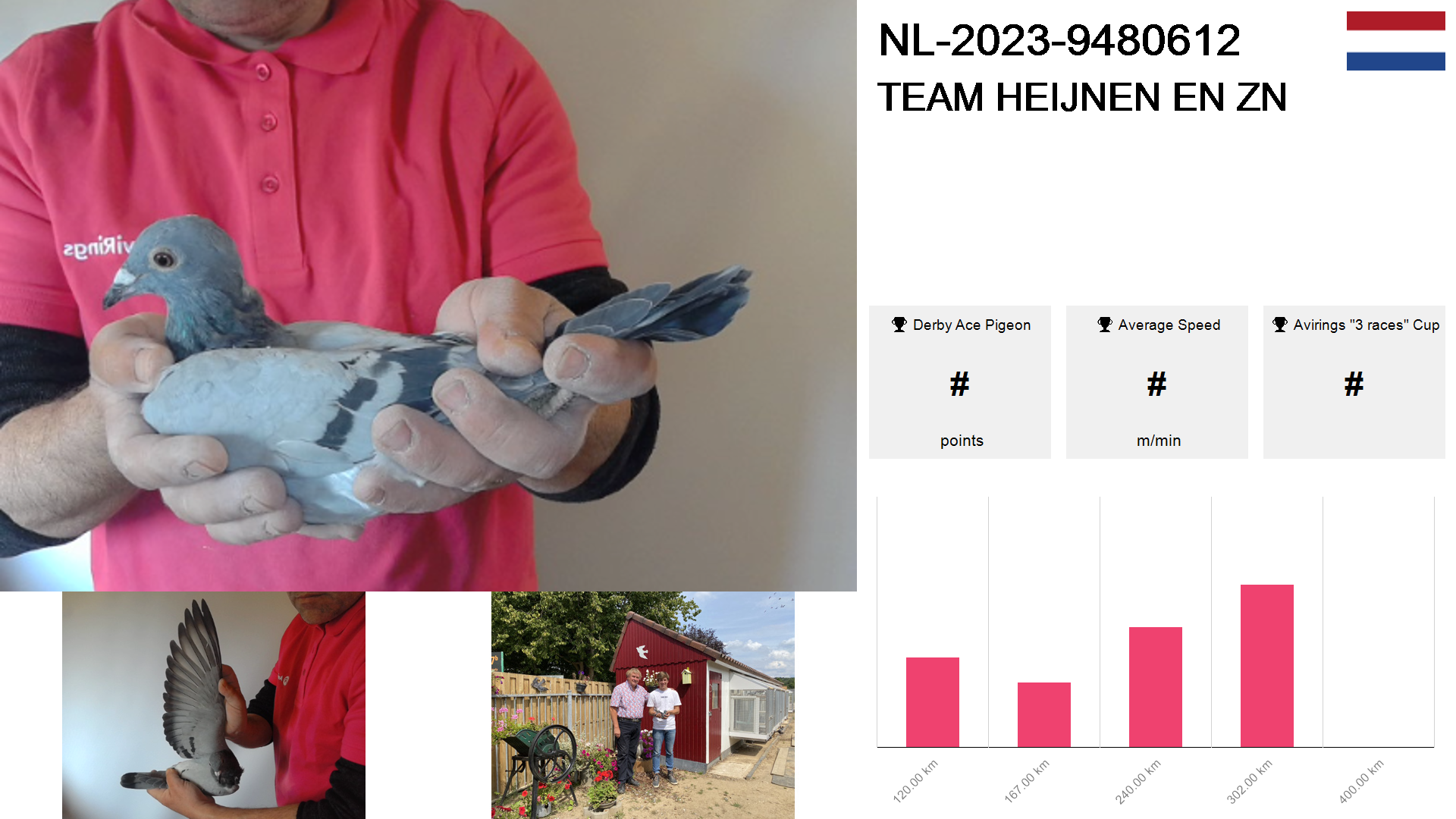 | Race | Position | Number of pigeons | Percent | Speed | Distance |