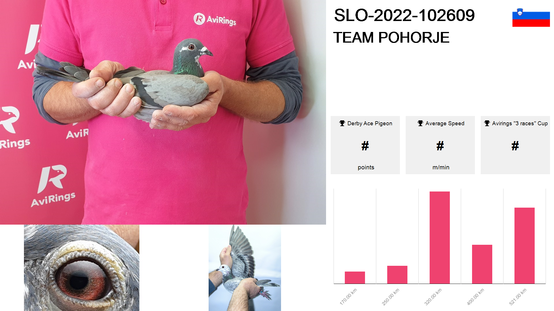 | Race | Position | Number of pigeons | Percent | Speed | Distance |