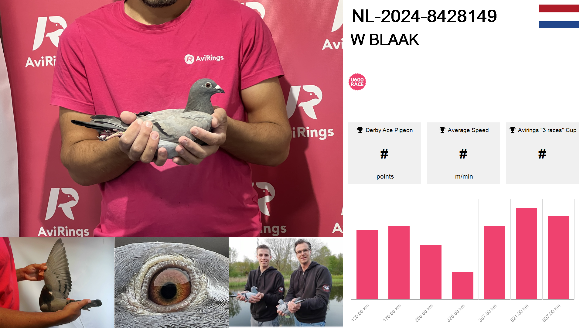 | Race | Position | Number of pigeons | Percent | Speed | Distance |