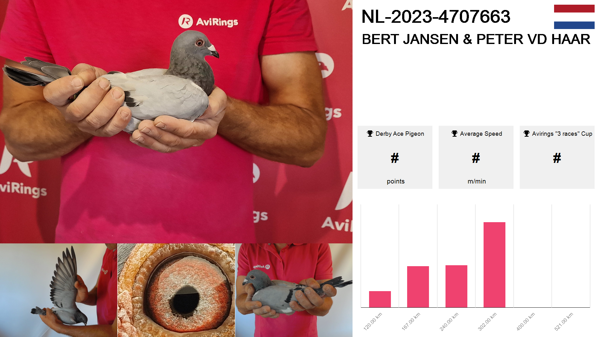 | Race | Position | Number of pigeons | Percent | Speed | Distance |