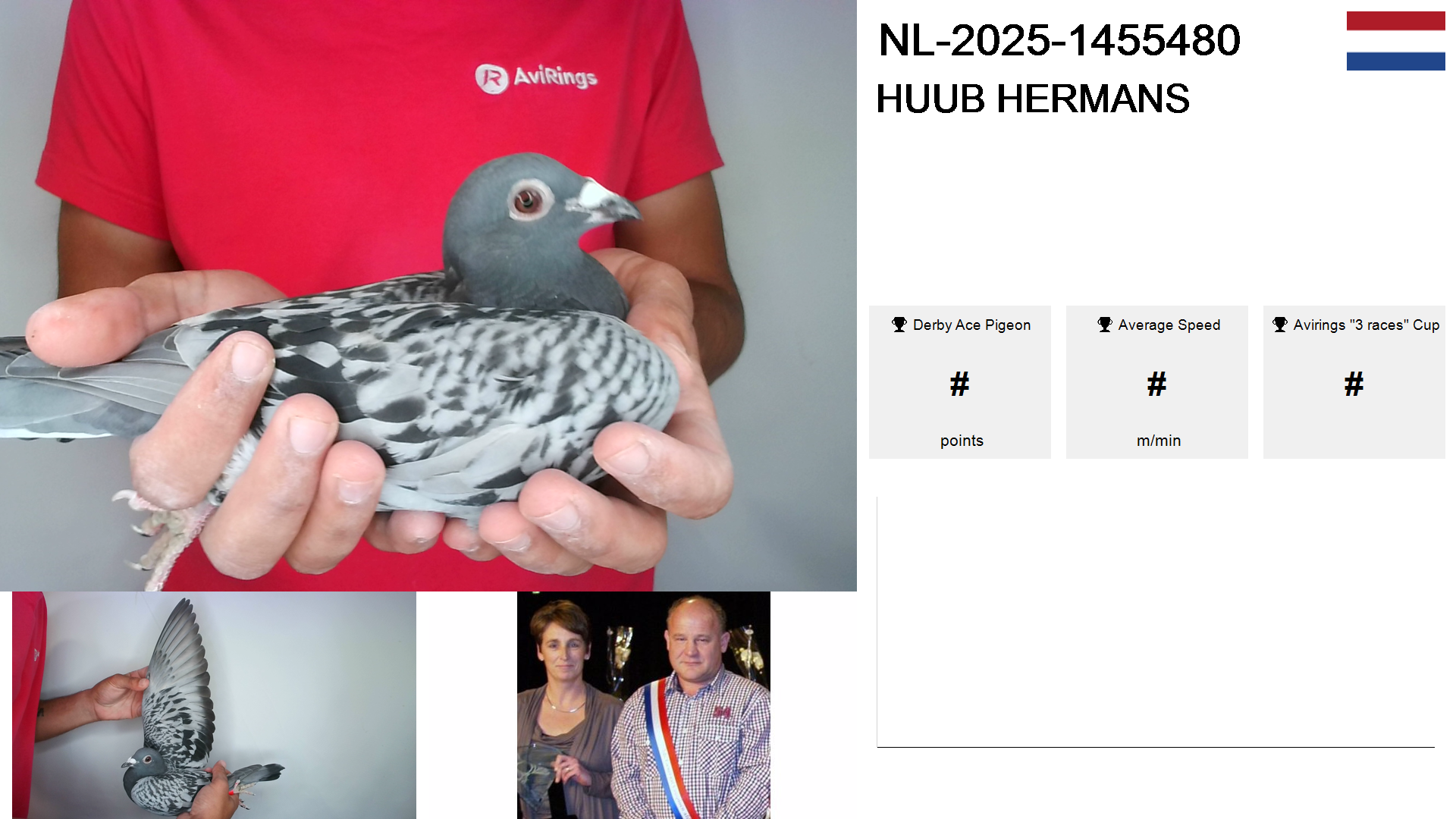 | Race | Position | Number of pigeons | Percent | Speed | Distance |