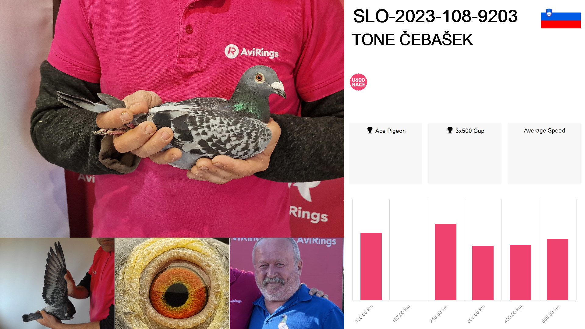 | Race | Position | Number of pigeons | Percent | Speed | Distance |