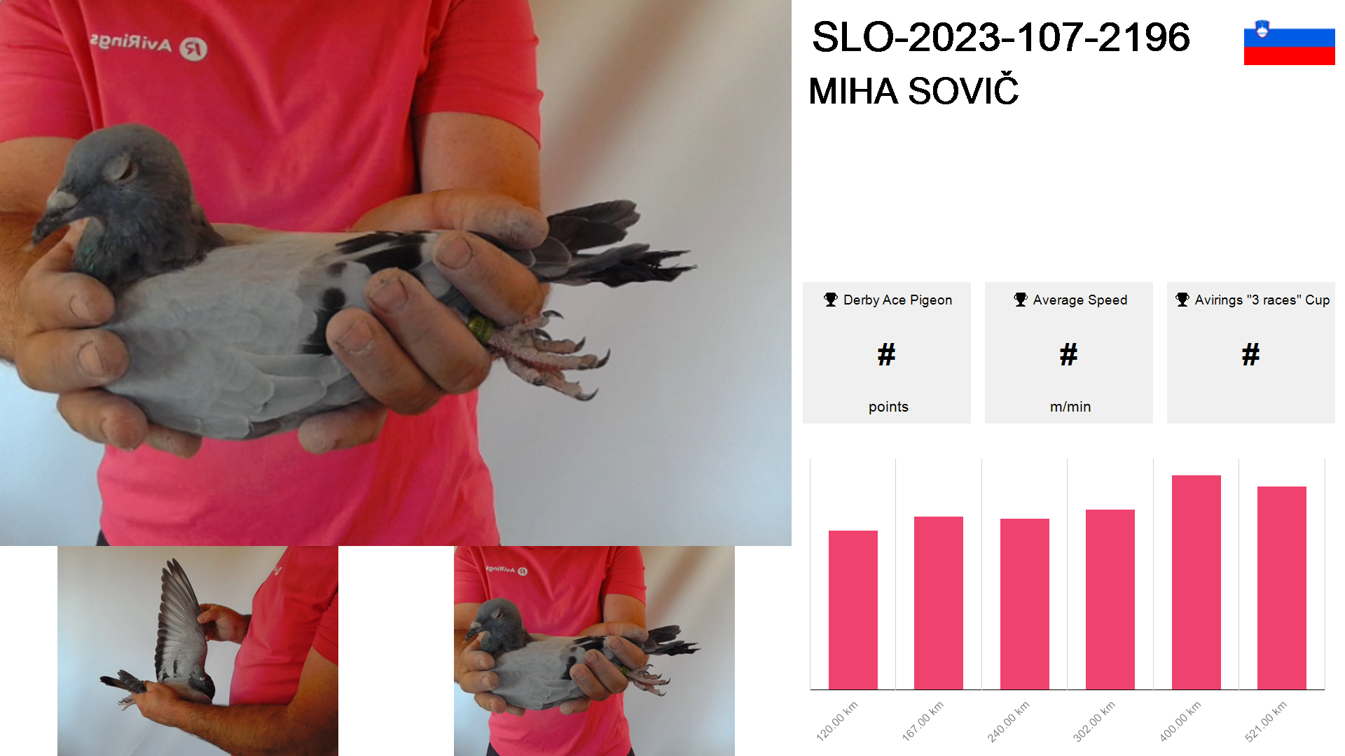 | Race | Position | Number of pigeons | Percent | Speed | Distance |