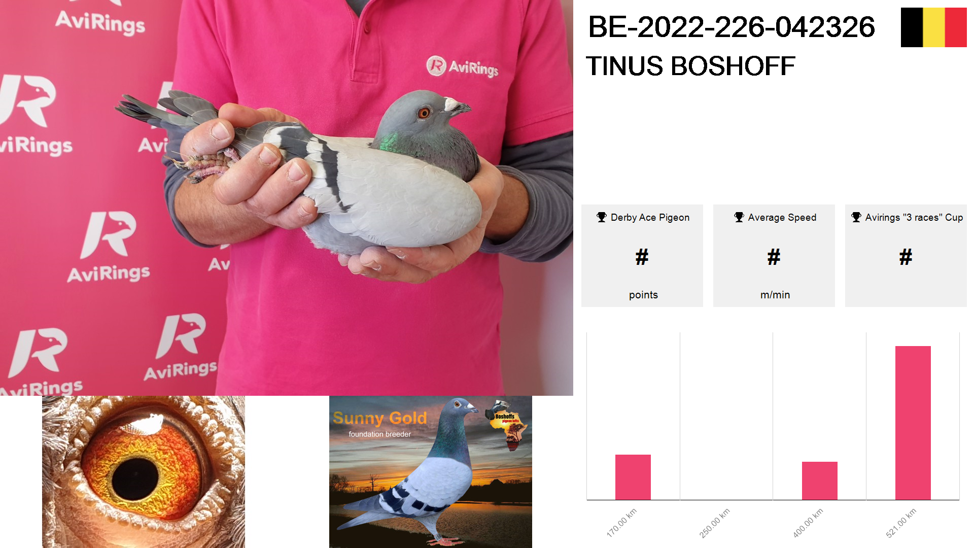 | Race | Position | Number of pigeons | Percent | Speed | Distance |
