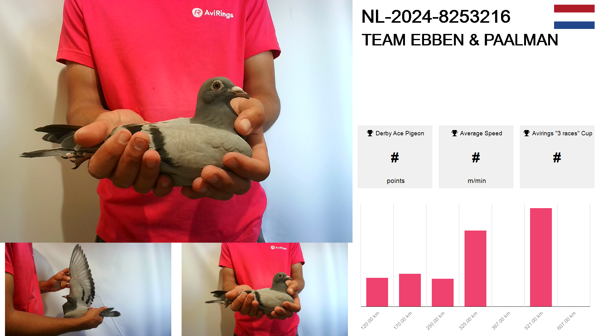 | Race | Position | Number of pigeons | Percent | Speed | Distance |