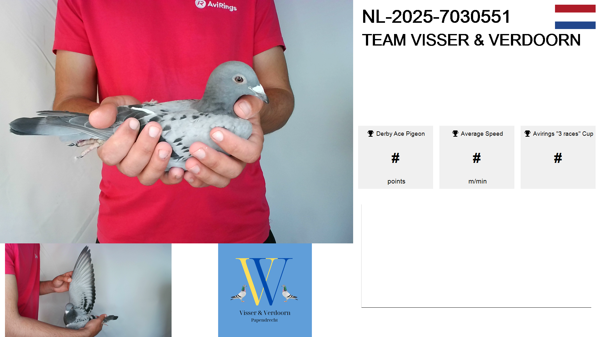 | Race | Position | Number of pigeons | Percent | Speed | Distance |