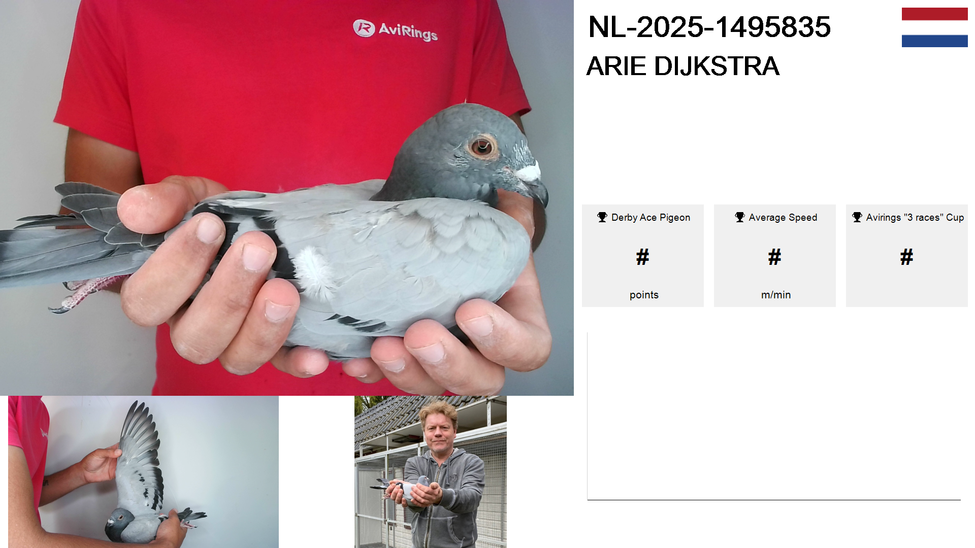 | Race | Position | Number of pigeons | Percent | Speed | Distance |