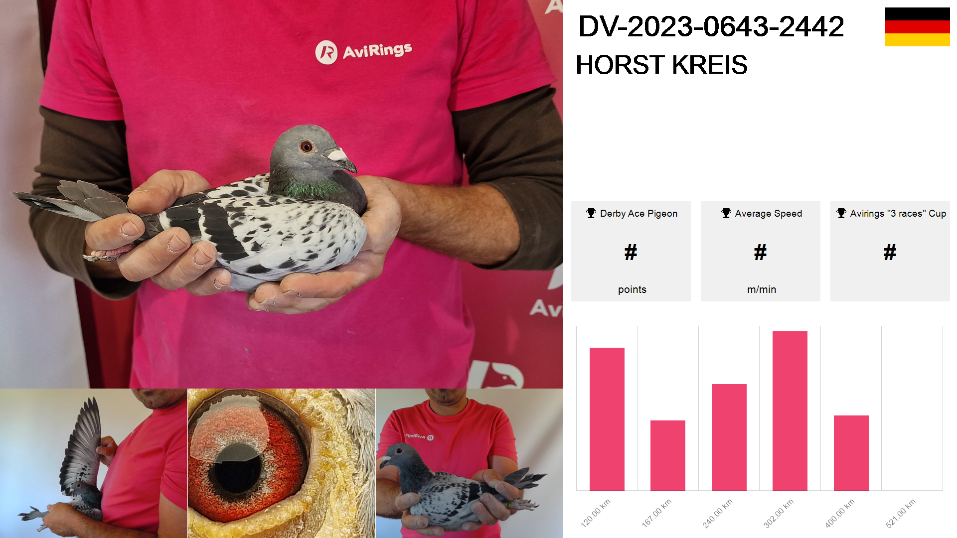 | Race | Position | Number of pigeons | Percent | Speed | Distance |