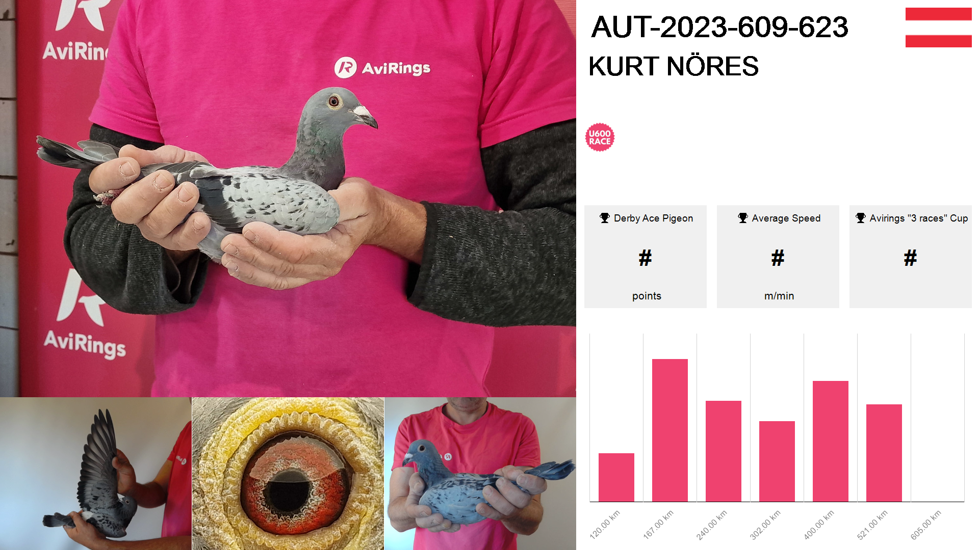 | Race | Position | Number of pigeons | Percent | Speed | Distance |