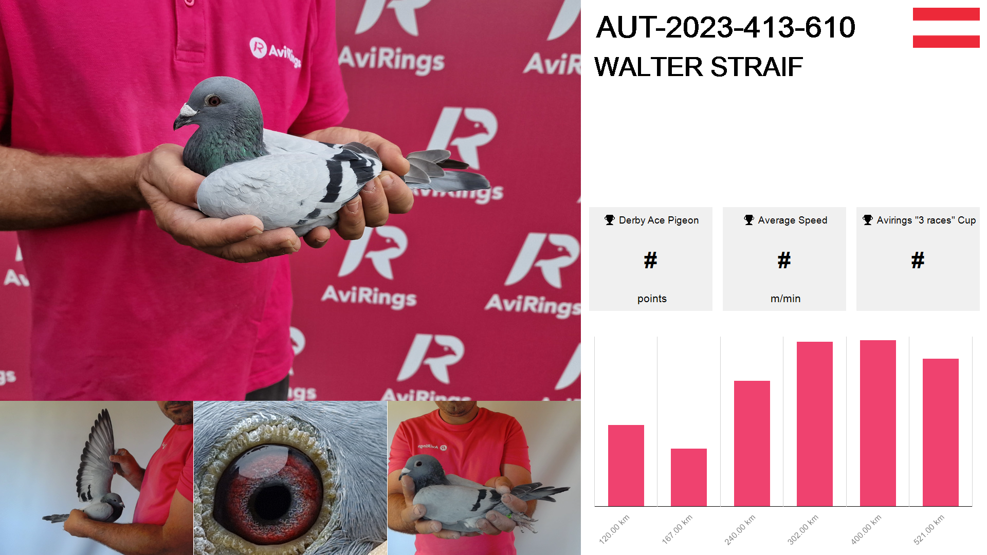 | Race | Position | Number of pigeons | Percent | Speed | Distance |
