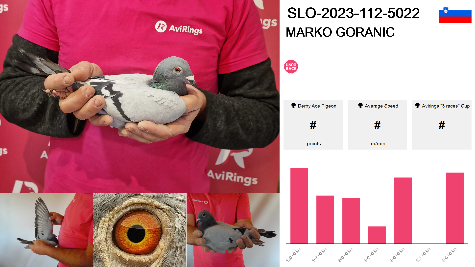 | Race | Position | Number of pigeons | Percent | Speed | Distance |