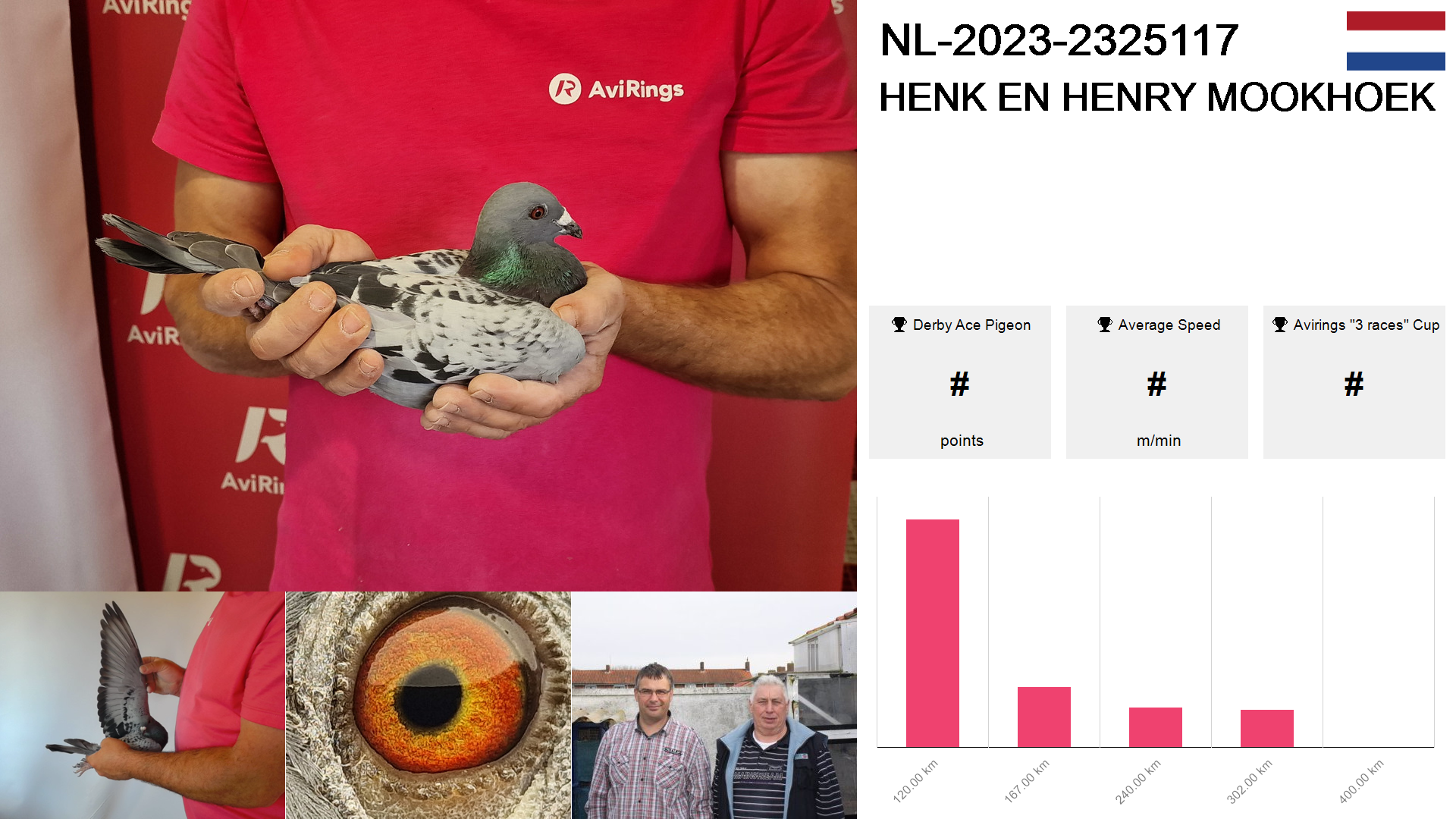| Race | Position | Number of pigeons | Percent | Speed | Distance |