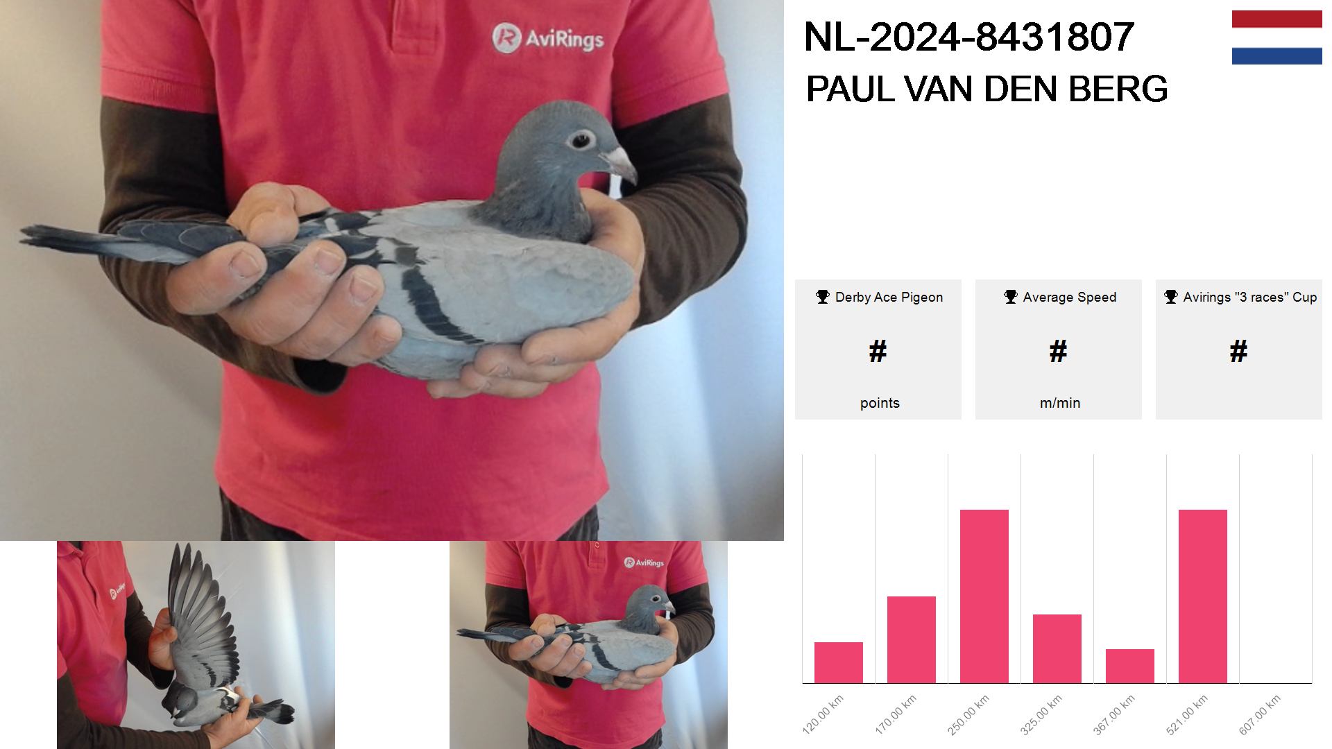| Race | Position | Number of pigeons | Percent | Speed | Distance |