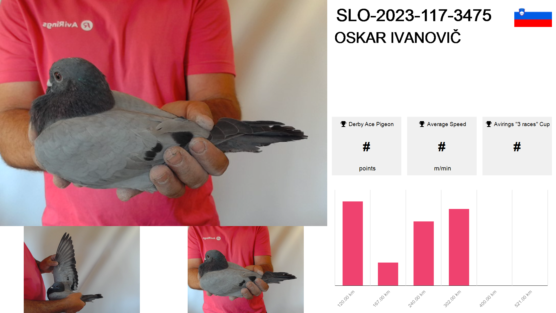 | Race | Position | Number of pigeons | Percent | Speed | Distance |