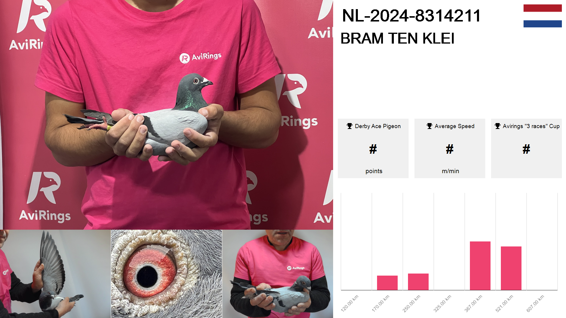 | Race | Position | Number of pigeons | Percent | Speed | Distance |