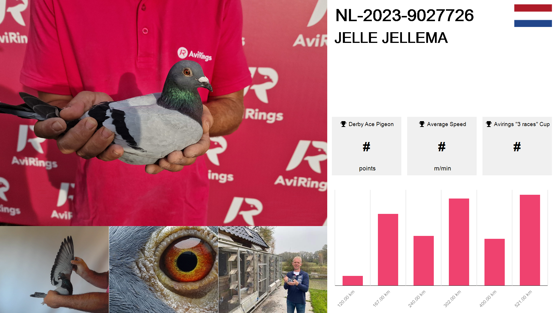 | Race | Position | Number of pigeons | Percent | Speed | Distance |