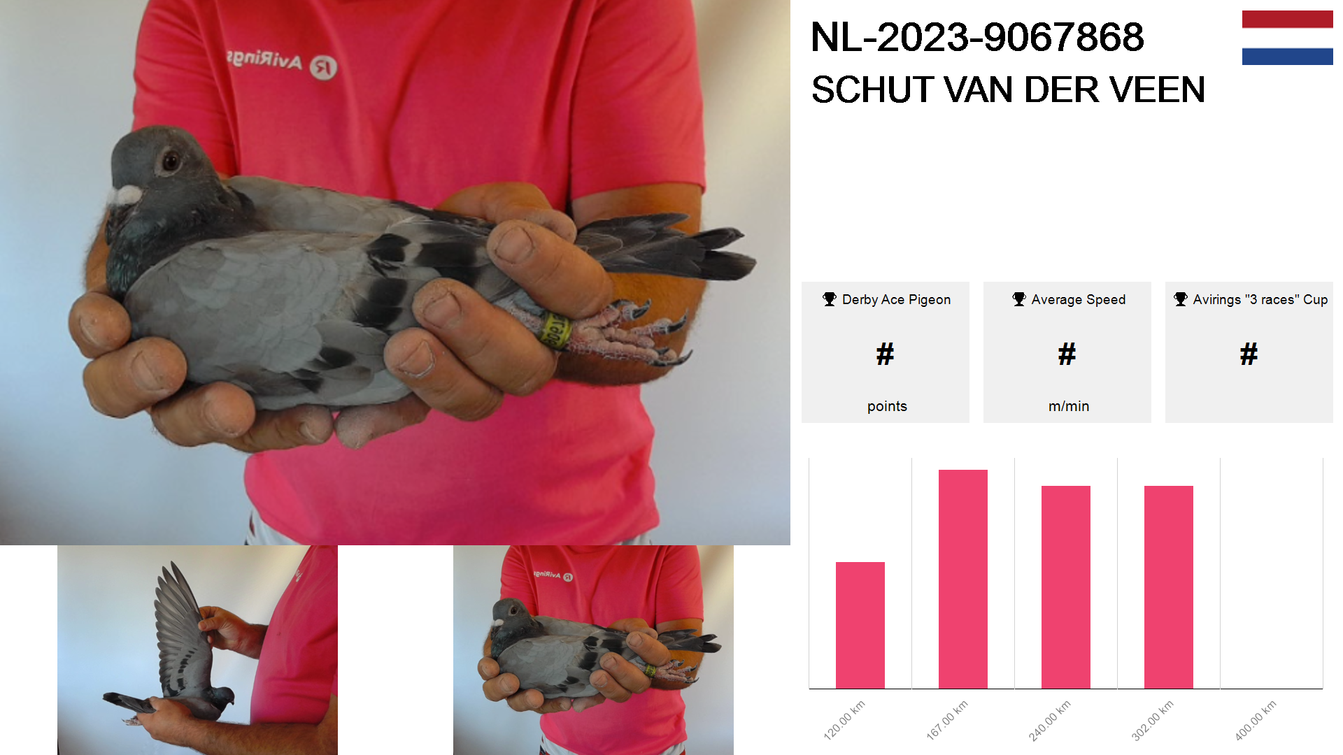 | Race | Position | Number of pigeons | Percent | Speed | Distance |