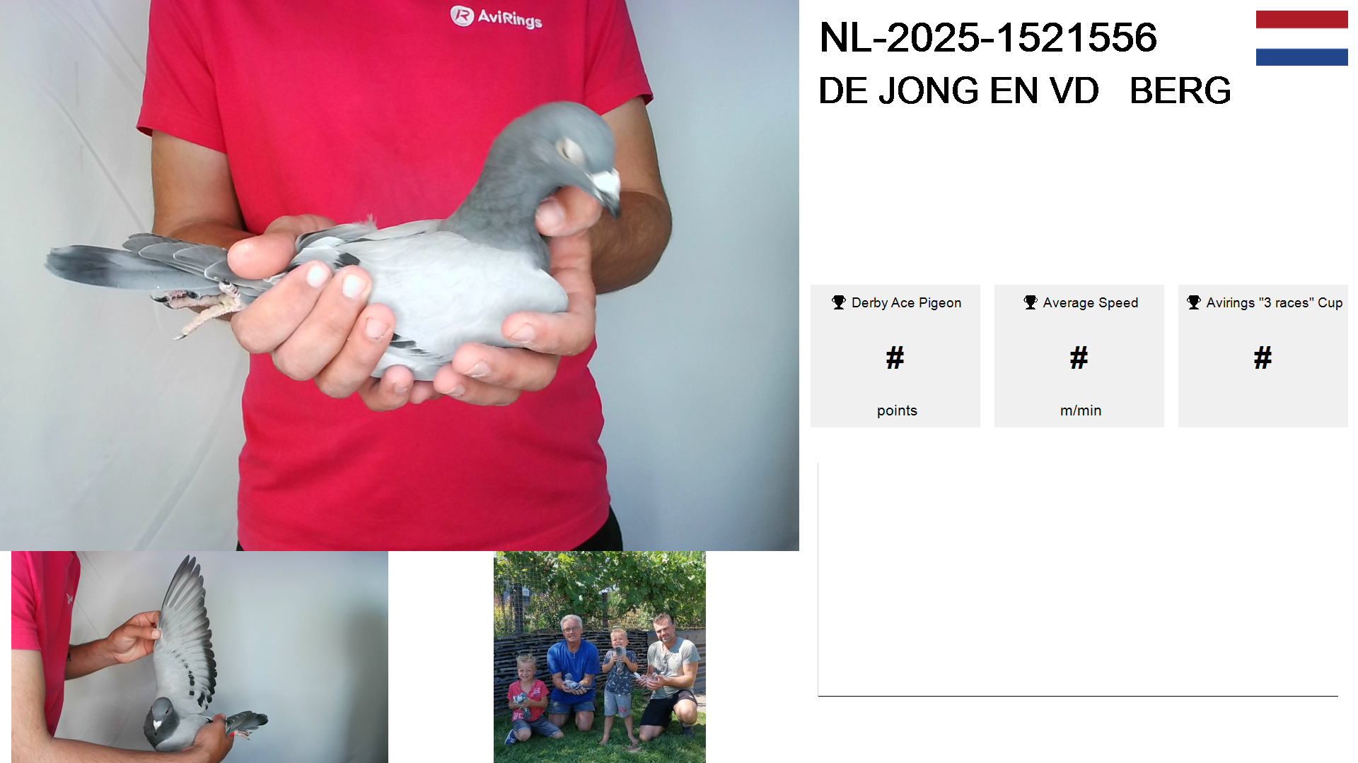 | Race | Position | Number of pigeons | Percent | Speed | Distance |