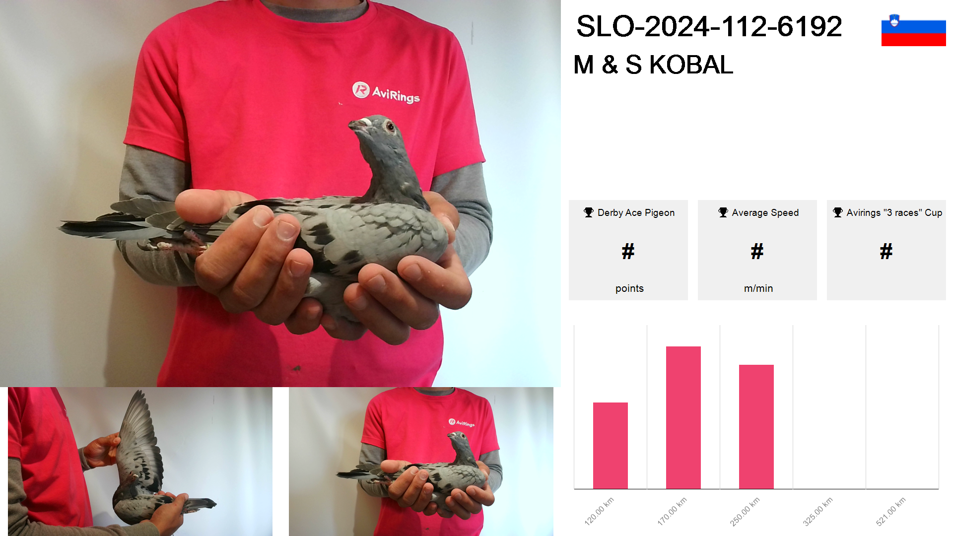 | Race | Position | Number of pigeons | Percent | Speed | Distance |